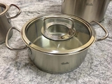 Thép 18/10 được ứng dụng chủ yếu trong lĩnh vực y tế và vũ trụ không gian. Sử dụng thép không gỉ 18/10 theo đúng tiêu chuẩn Đức giúp thân nồi Fissler Original Pro chắc chắn, bền bỉ, truyền và giữ nhiệt tốt, đẹp và bóng loáng trong thời gian dài. Và hơn hết, chính vì là phần tiếp xúc trực tiếp với thức ăn nên chất liệu thân nồi thép 18/10 mà Fissler sử dụng luôn đảm bảo là an toàn cho sức khỏe cho dù được nung nóng lên nhiệt độ cao hay khi sử dụng lâu năm.