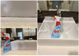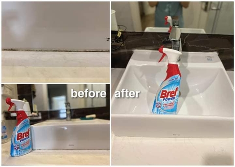 - Với kẽ tường nhà tắm hay trên tường, bạn chỉ cần xịt qua Bref power là có thể lau sạch ngay.