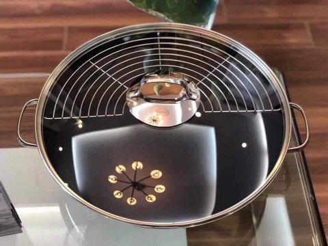 👉Chảo xào sâu lòng, vừa kèm vung, vừa có gác inox ráo dầu, tiện lợi vô cùng.